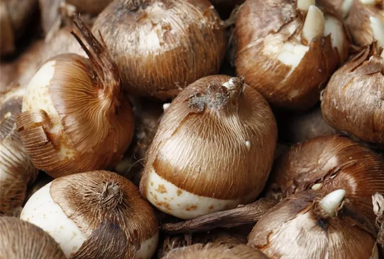 Es gibt etwa 80 Arten und zahlreiche Sorten. Auch wenn manche Sorten im Herbst blühen, ist Krokus vor allem als Frühlingsblume bekannt. Als solche wird er im Herbst in den Garten gesetzt. Der beste Pflanzzeitpunkt für die Blumenzwiebel ist zwischen September und Oktober. Dabei entstehen meist kleine oder größere Gruppen. Besonders schön machen sich ganze Blütenteppiche in einer Farbe. Den Luxus einer Zwiebelsammlung in nur einem Farbton erhalten Sie im Fachhandel. Aber auch ein bunter Mix der verschiedenen Farben des Krokusses – von Weiß über Gelb bis Lila – ist ein Hingucker. Üblicherweise sind die Blumenzwiebeln noch nicht ausgetrieben, wenn man sie setzt. Eine erste Wurzelbildung ist aber kein Drama. Im Gegenteil: Man erkennt gut, wo bei der Zwiebel unten ist.