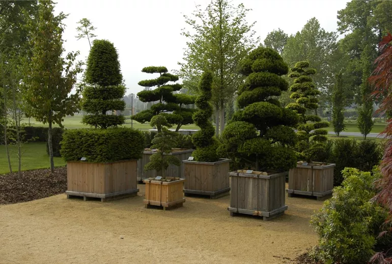 Formgehölze sind auch oft an öffentlichen Orten zu finden. Parks nutzen Formgehölze als Möglichkeit, Flächen mit vielen Gehölzen zu bestücken, ohne, dass es langweilig wirkt. Typische Beispiele sind da Ornamente oder gar komplette Labyrinthe. Da sich ein Labyrinth im eigenen Garten nur schwer umsetzen lässt und es wahrscheinlich an reichlich Platz mangelt, denkt der Gärtner beim Thema Formgehölze natürlich etwas kleiner. Ein einzelnstehender Baum hier, ein kleiner Busch im bunten Blumenbeet. Es muss nicht immer ein großer Park sein. Ein Weg durch den Garten lässt sich perfekt mit Formgehölzen einrahmen. Außerdem sind Formgehölze ideal dafür geeignet, weniger schöne Ecken im Garten zu kaschieren. Wächst an einer Stelle der Rasen nicht richtig? Einfach ein Formgehölz in der Nähe platziert und schon zieht das Formgehölz den Blick auf sich und weg von der kahlen Stelle im Rasen.